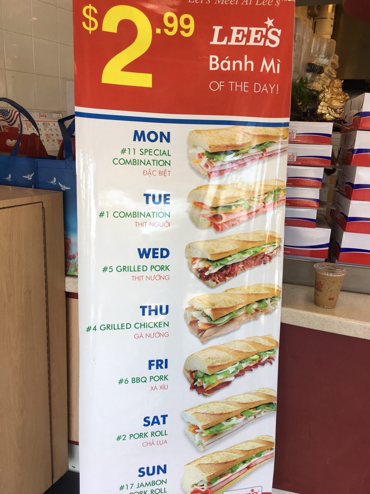 Lee’s Sandwiches is a Vietnamese establishment in Alhambra, CA, known for its delicious Banh Mi sandwiches and strong, sweet coffee. Customers rave about the grilled pork and tofu Banh Mi options, as well as the freshly baked baguettes. The friendly staff and efficient service make for a positive dining experience, with many noting the cleanliness and organization of the store. While some customers prefer ordering online for pickup, others enjoy the drive-thru option for convenience. The menu offers a variety of Vietnamese pastries, breakfast sandwiches, and appetizers like chicken nuggets and egg rolls. With vegan options available, a selection of beverages, and a welcoming atmosphere, Lee’s Sandwiches is a go-to spot for a satisfying meal or snack.